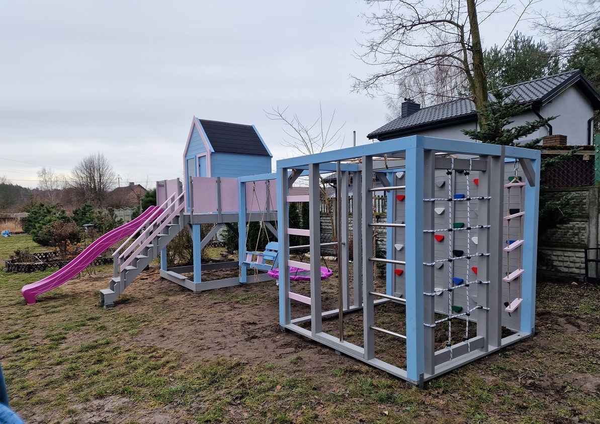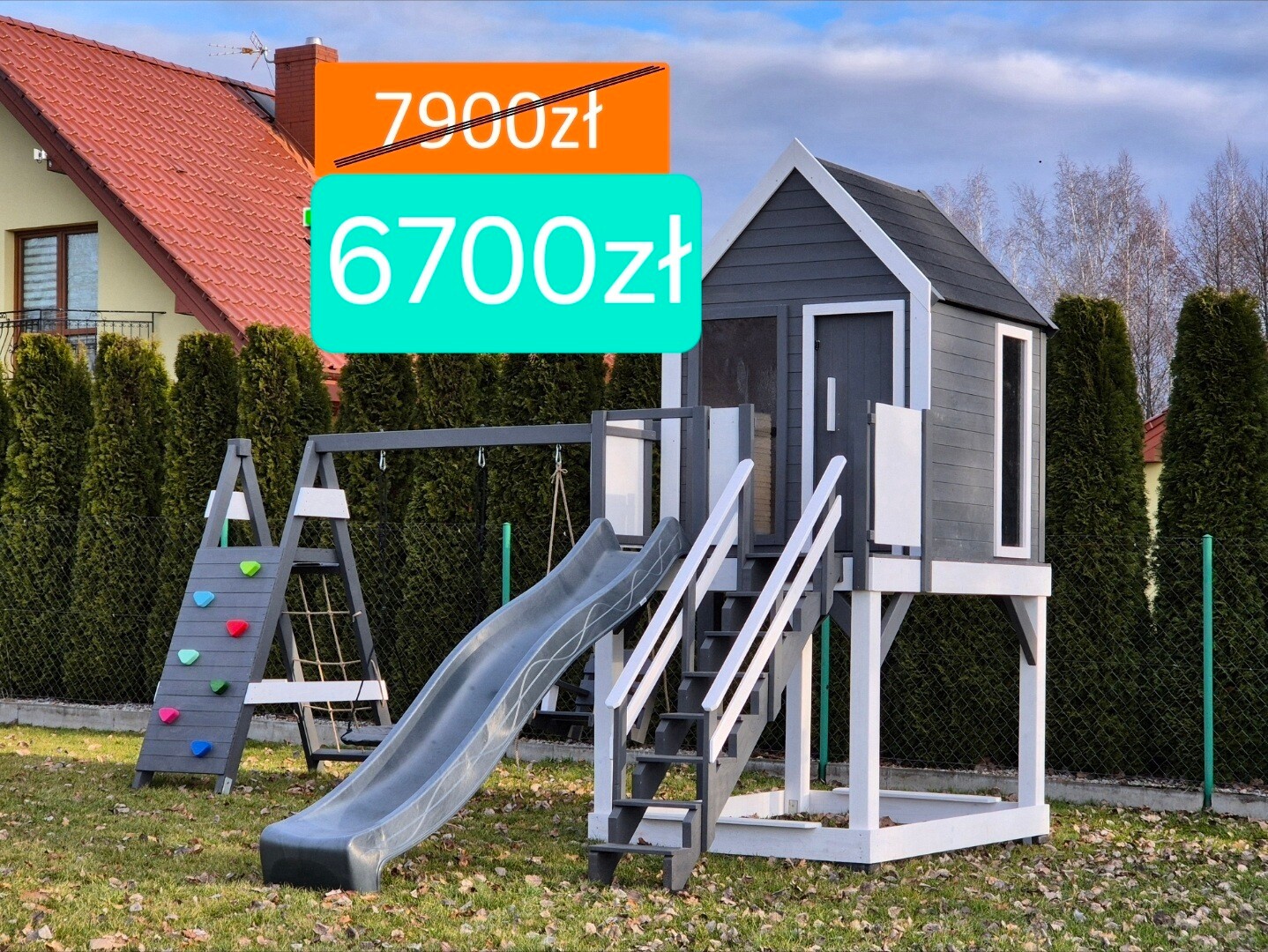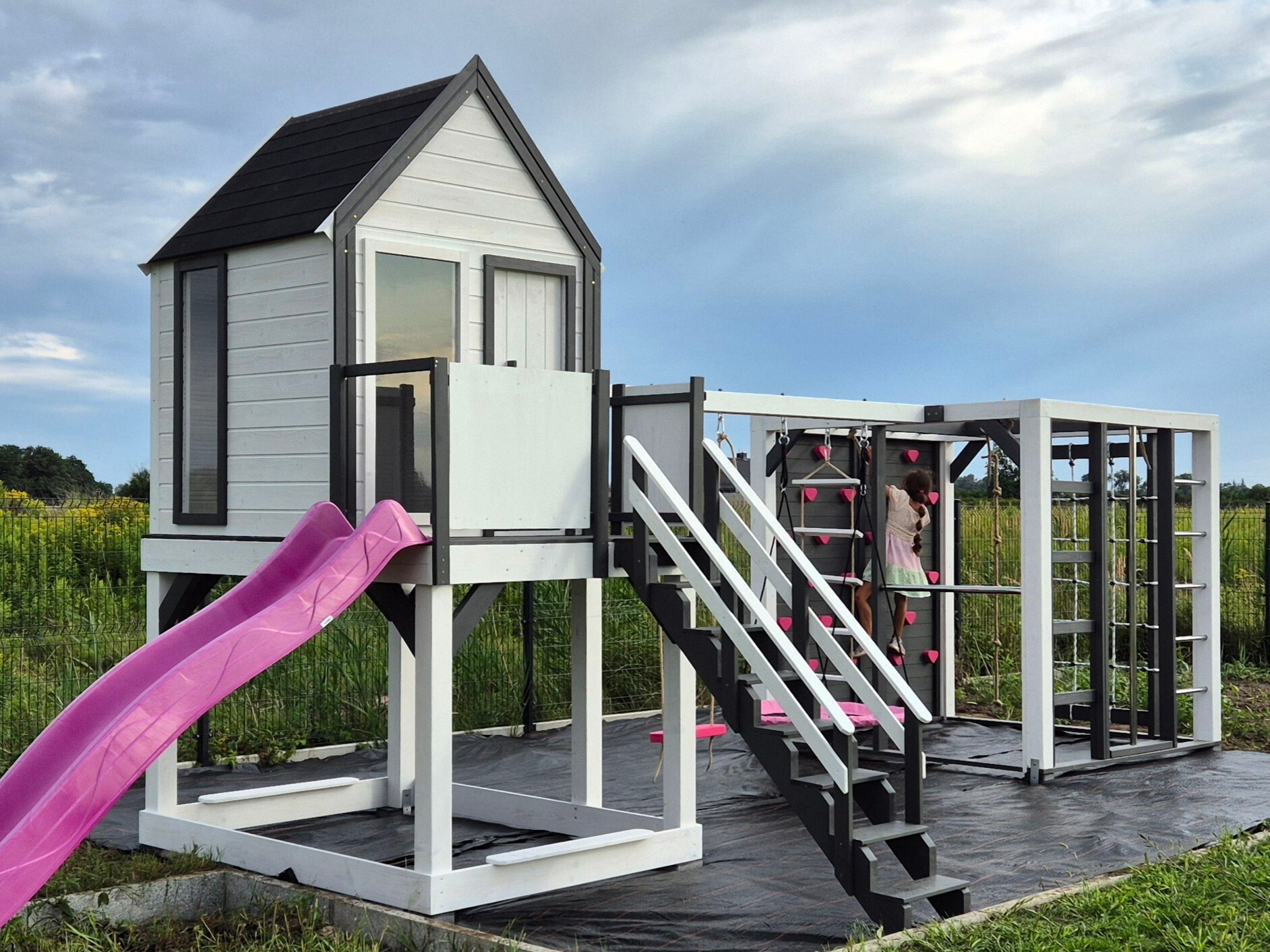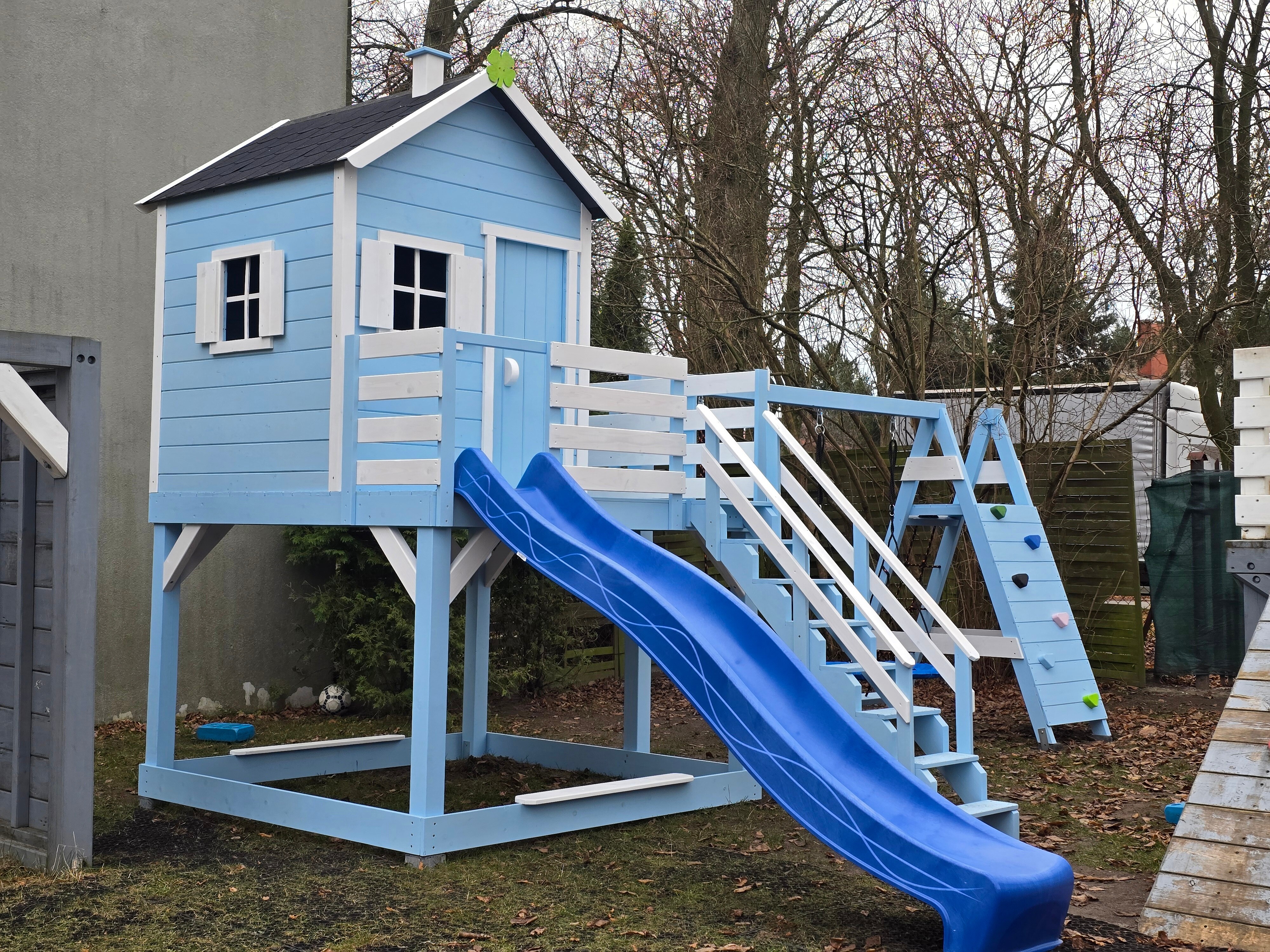 Klasyczny "prosty" domek z powiększonym podestem i ścianką wspinaczkową: