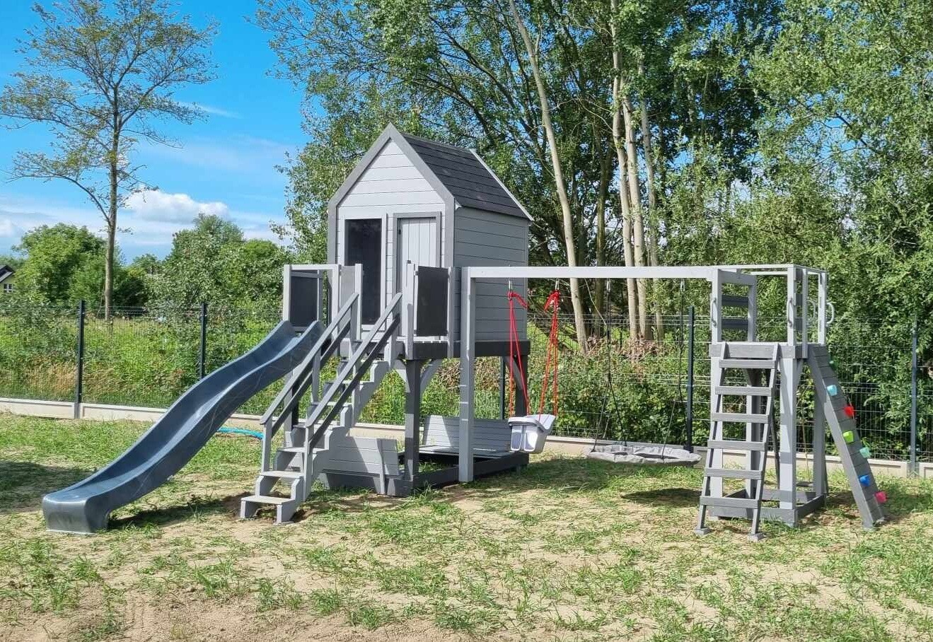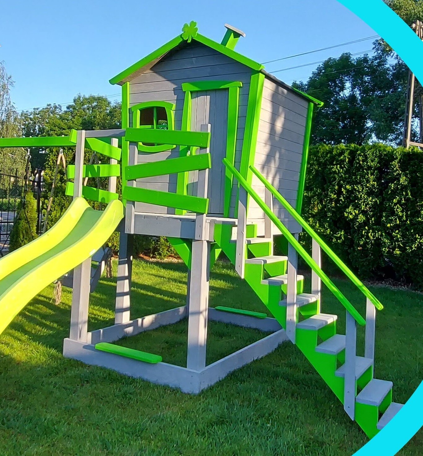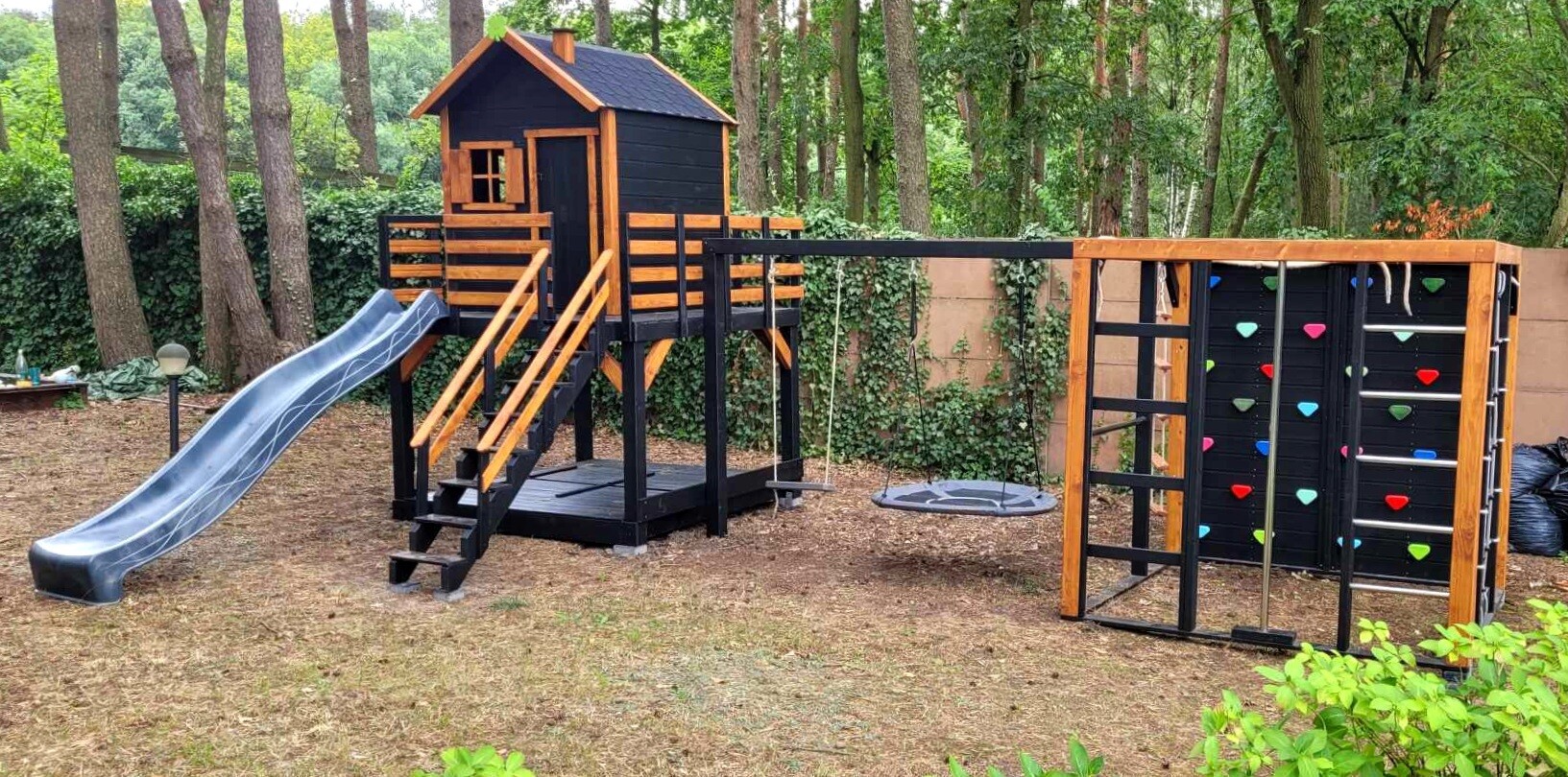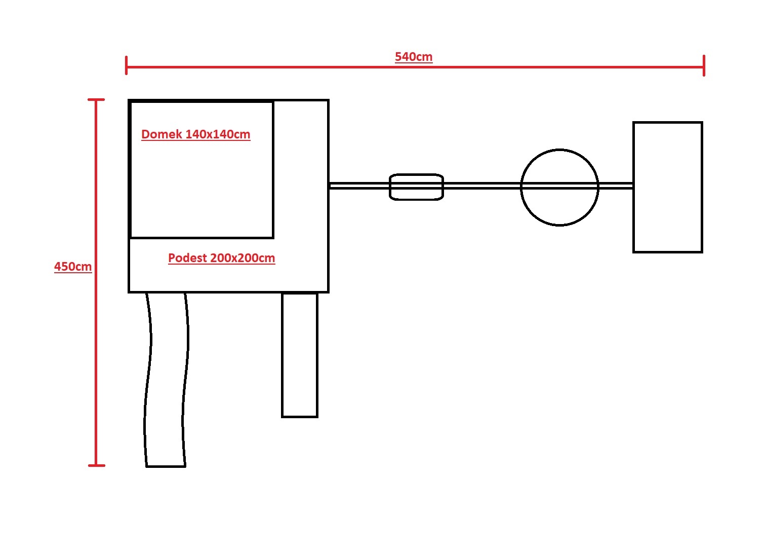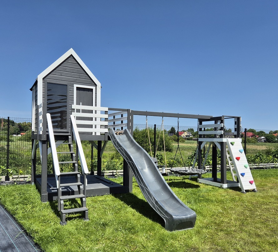 Klasyczny "prosty" domek z powiększonym podestem i ścianką wspinaczkową: