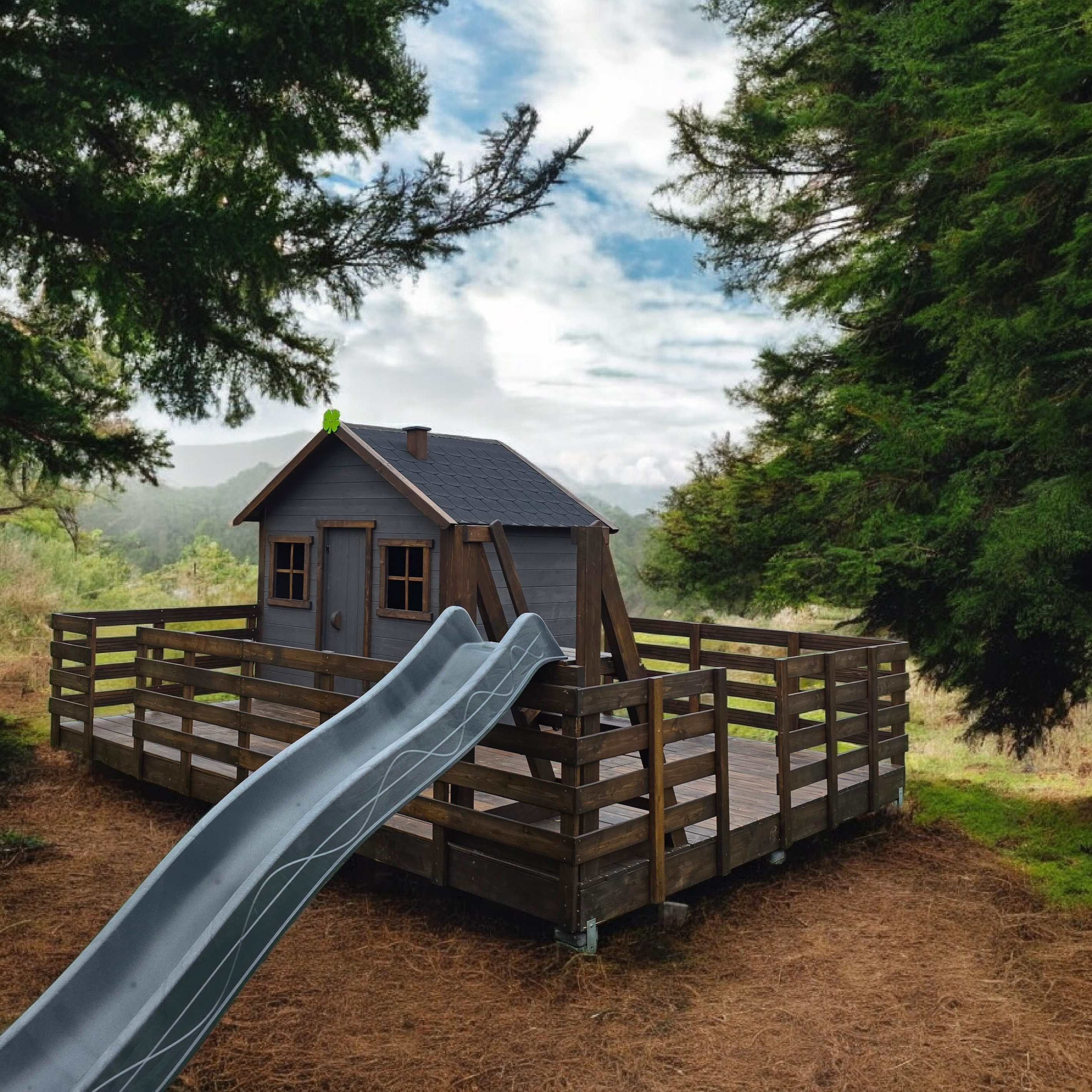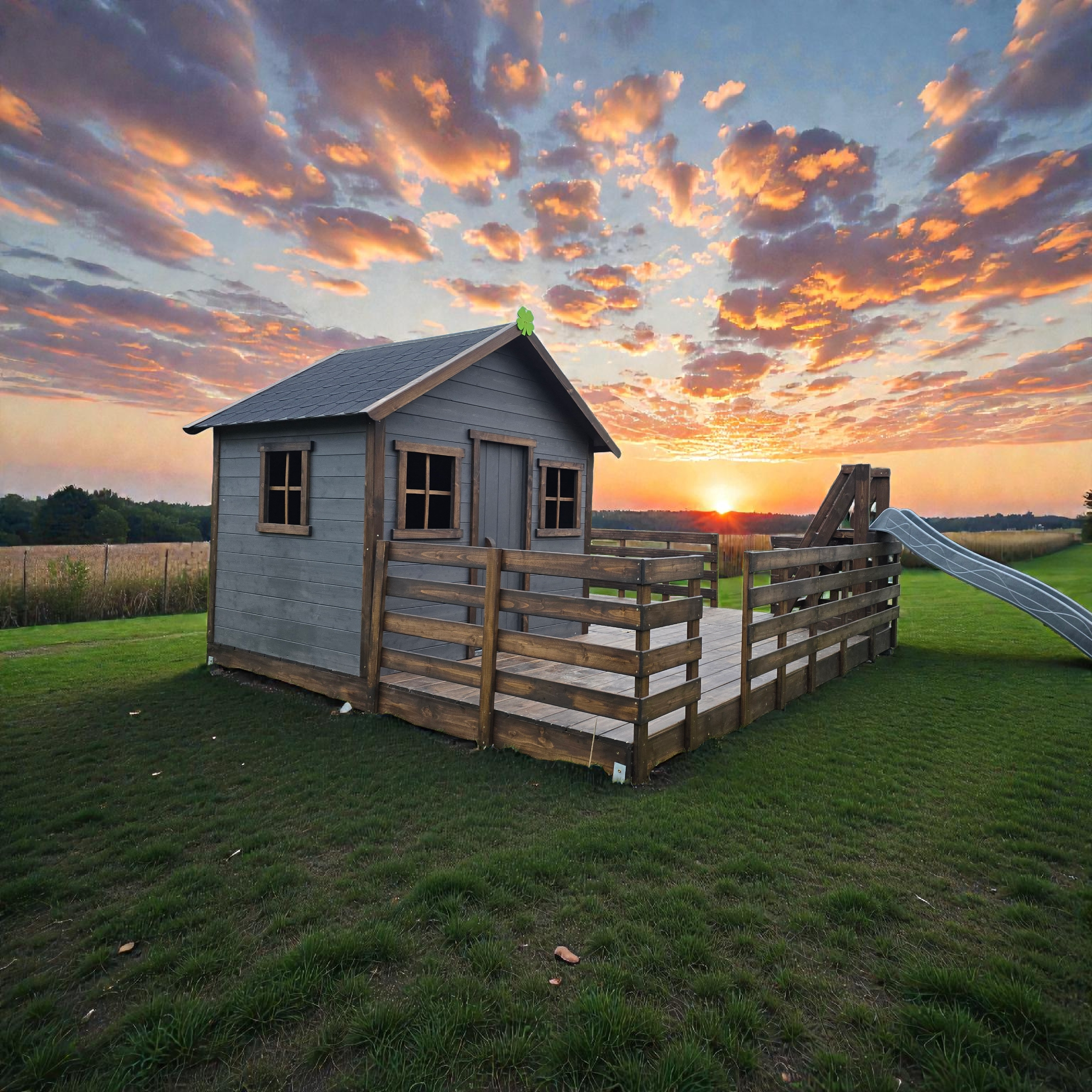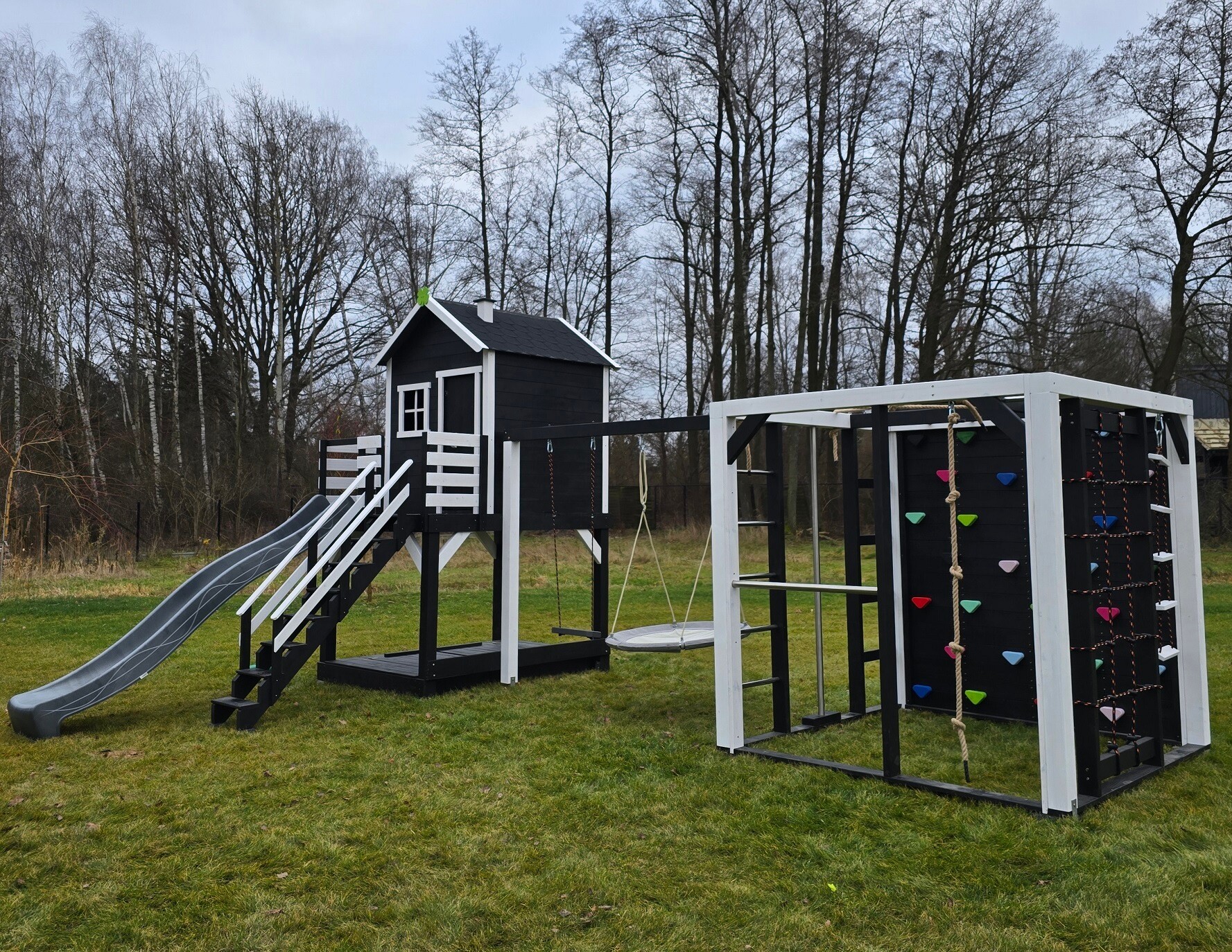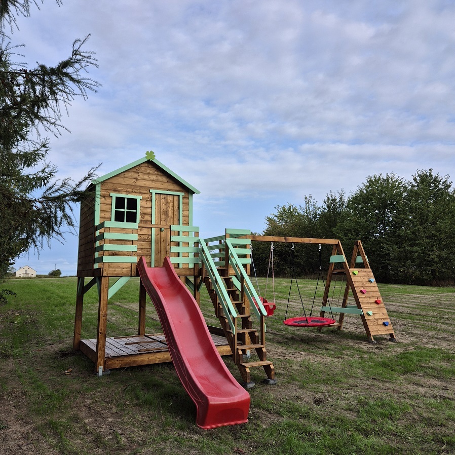 Klasyczny "prosty" domek z powiększonym podestem i ścianką wspinaczkową: