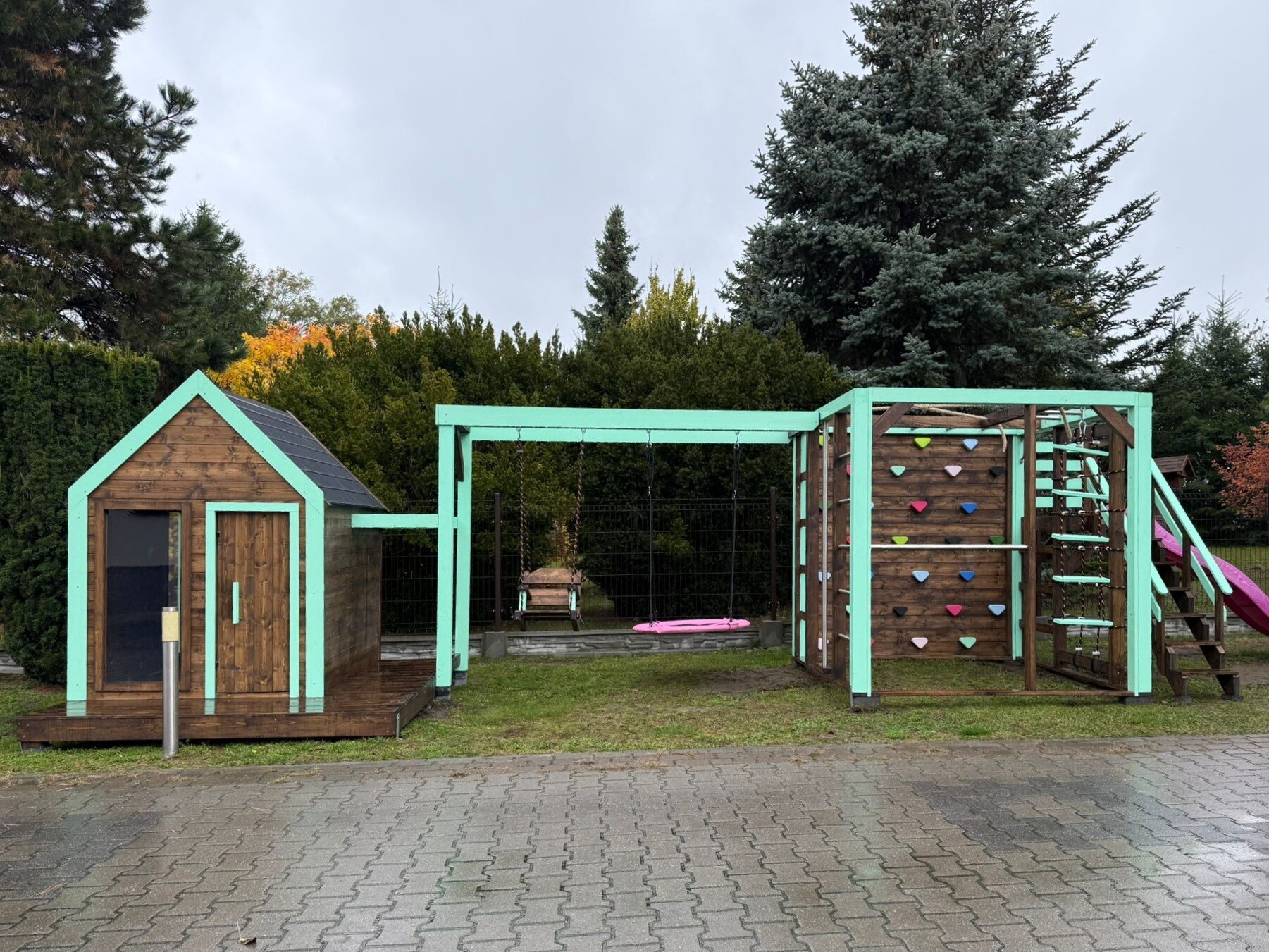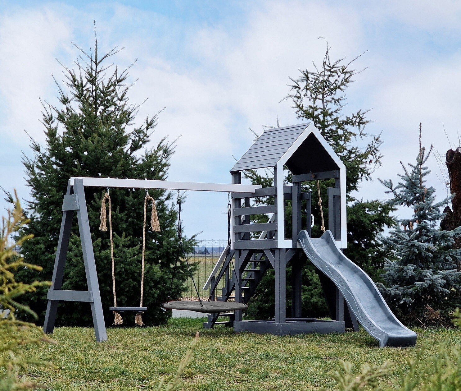 Ślizg, huśtawki, zamykana piaskownica