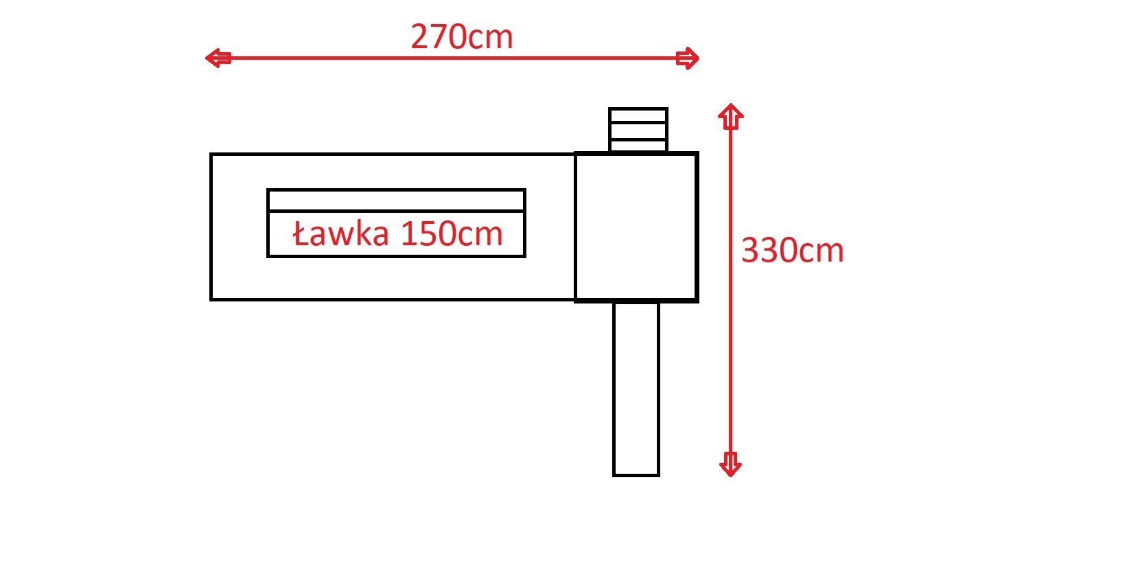 Podstawa 110x210cm, ławka 150cm