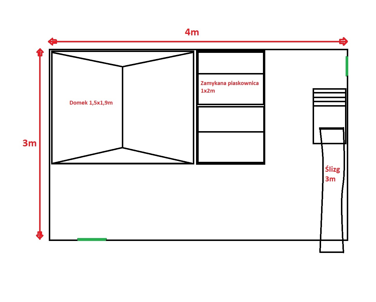 Domek, zamykana piaskownica, ślizg 3m